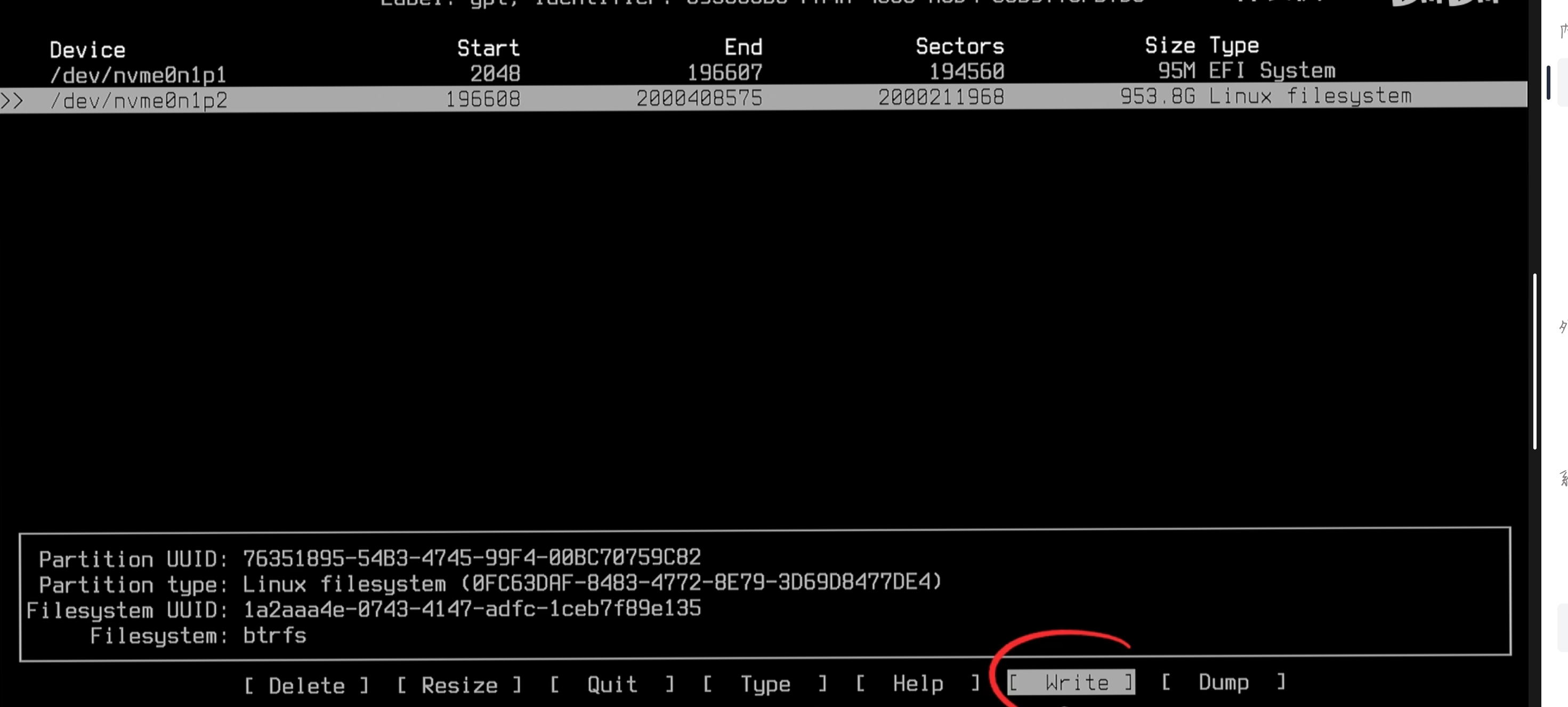 mkfs.fat -F 32 /dev/nvme0n1p1把根分区格式化为 btrfs
