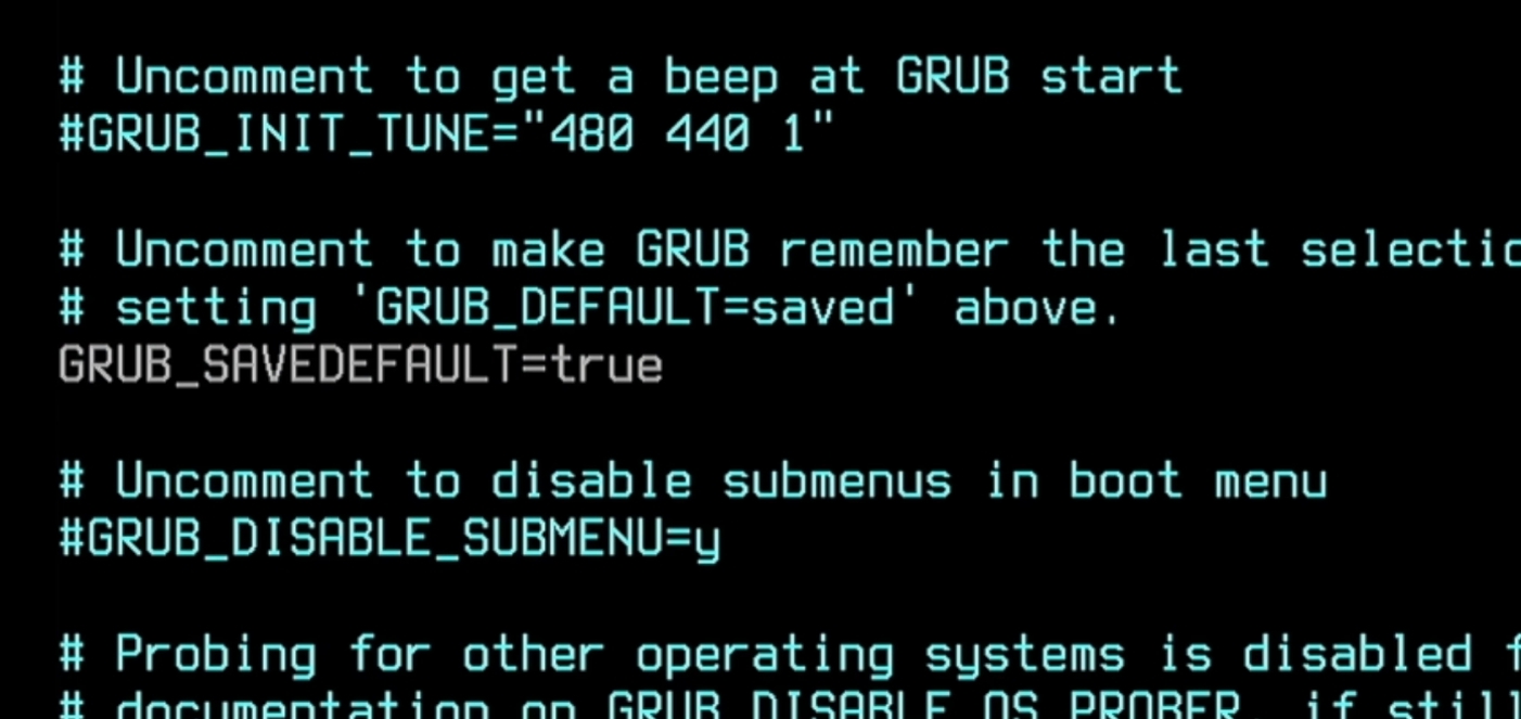 打开grub的记忆功能,记住选择的是哪一项,放开这行注释 GRUB_SAVEDEFAULT=true