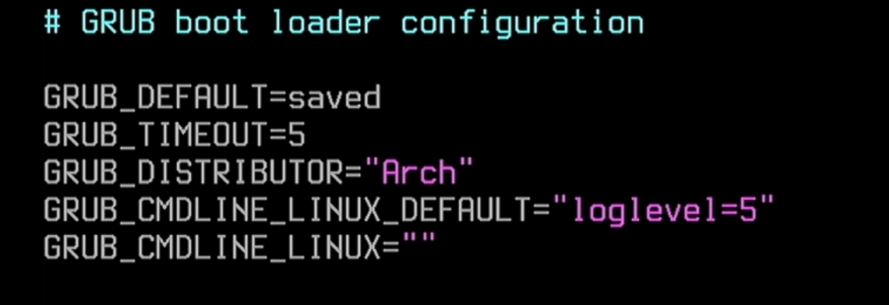 vim /etc/default/grub将 GRUB_CMDLINE_LINUX_DEFAULT 的内容修改为 loglevel=5